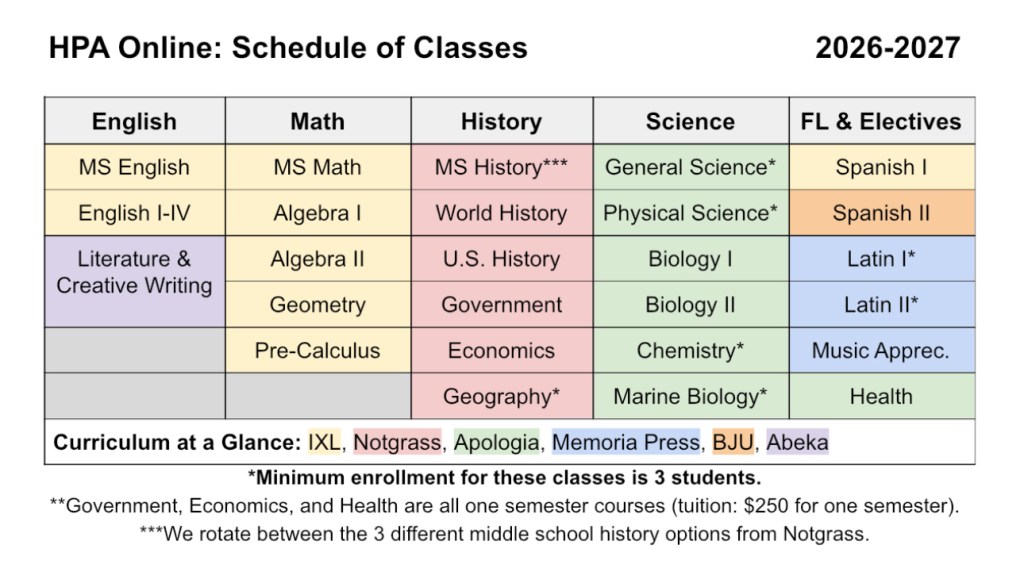 Whether your student needs core subjects, electives, or extra academic support, HPA classes are created to challenge, encourage, and inspire confident learners.